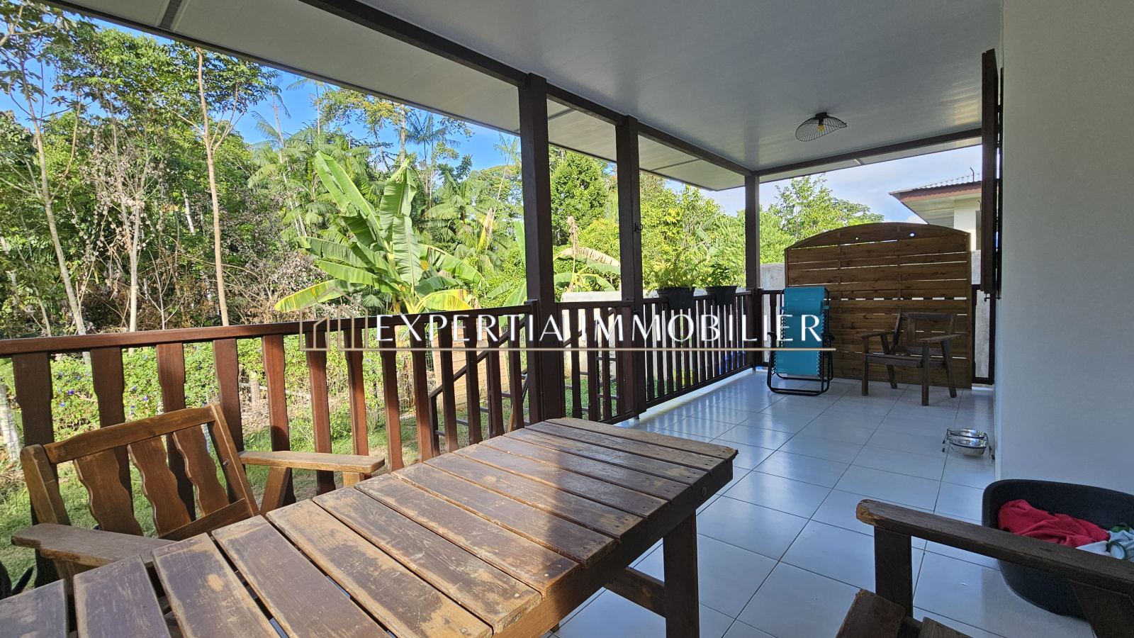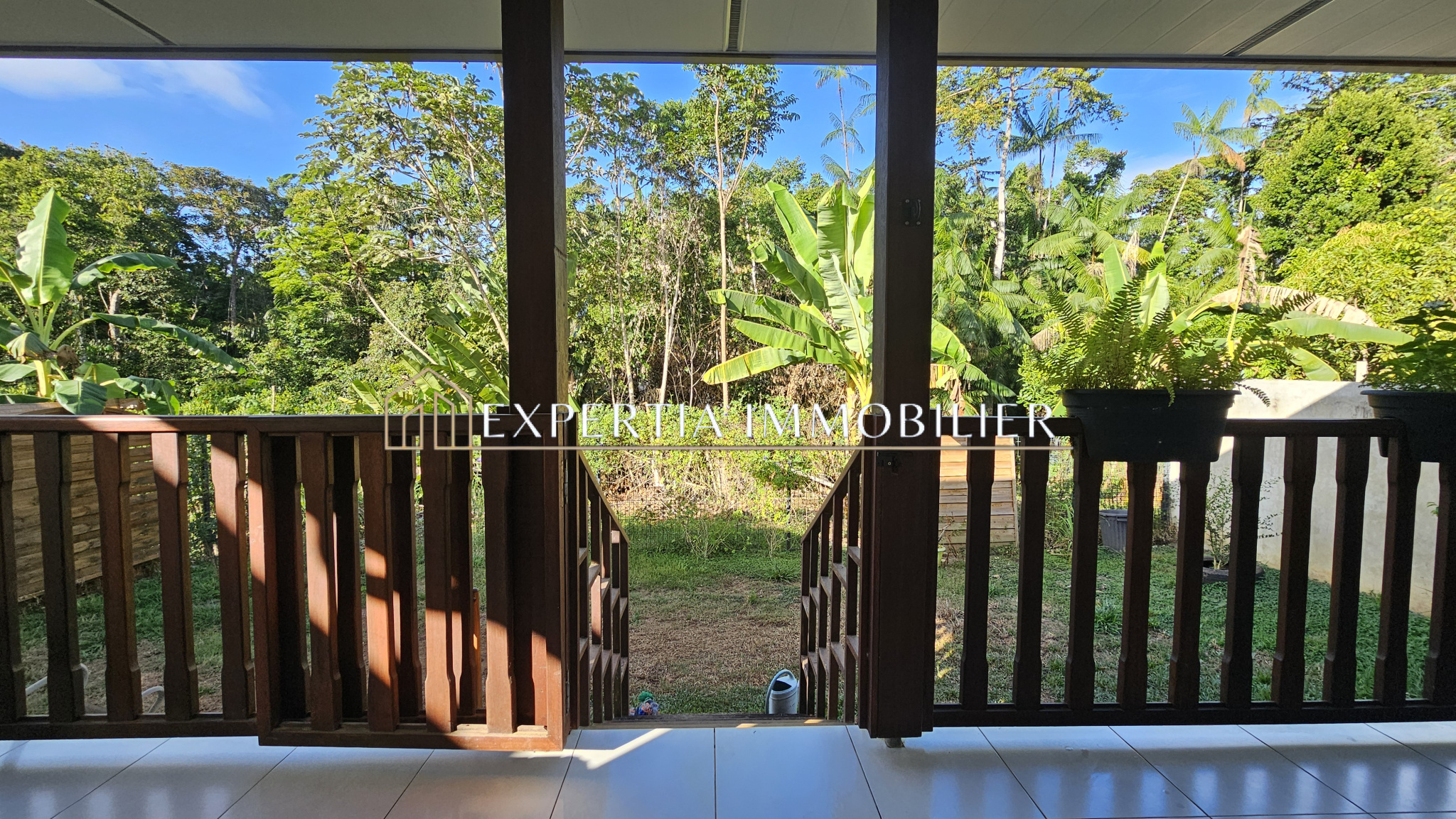 D’une surface habitable d’environ 77 m², elle est implantée sur un terrain de 326 m² et offre un agencement parfaitement optimisé. La pièce de vie, lumineuse et conviviale, se compose d’une belle cuisine ouverte sur le salon, prolongée par une terrasse intime donnant sur une vue arborée, idéale pour profiter pleinement de la nature guyanaise.